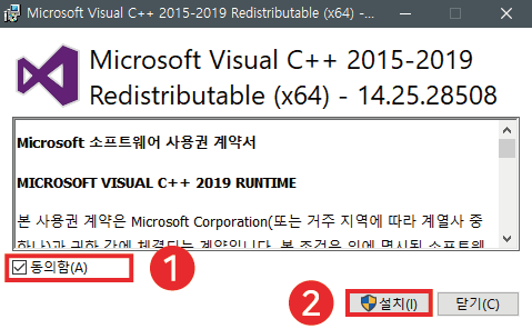 이렇게 마이크로소프트 공식 지원 사이트에서 Visual C++ 재배포 가능 패키지를 설치하는 것이 더 확실한 방법이라고 할 수 있겠습니다.