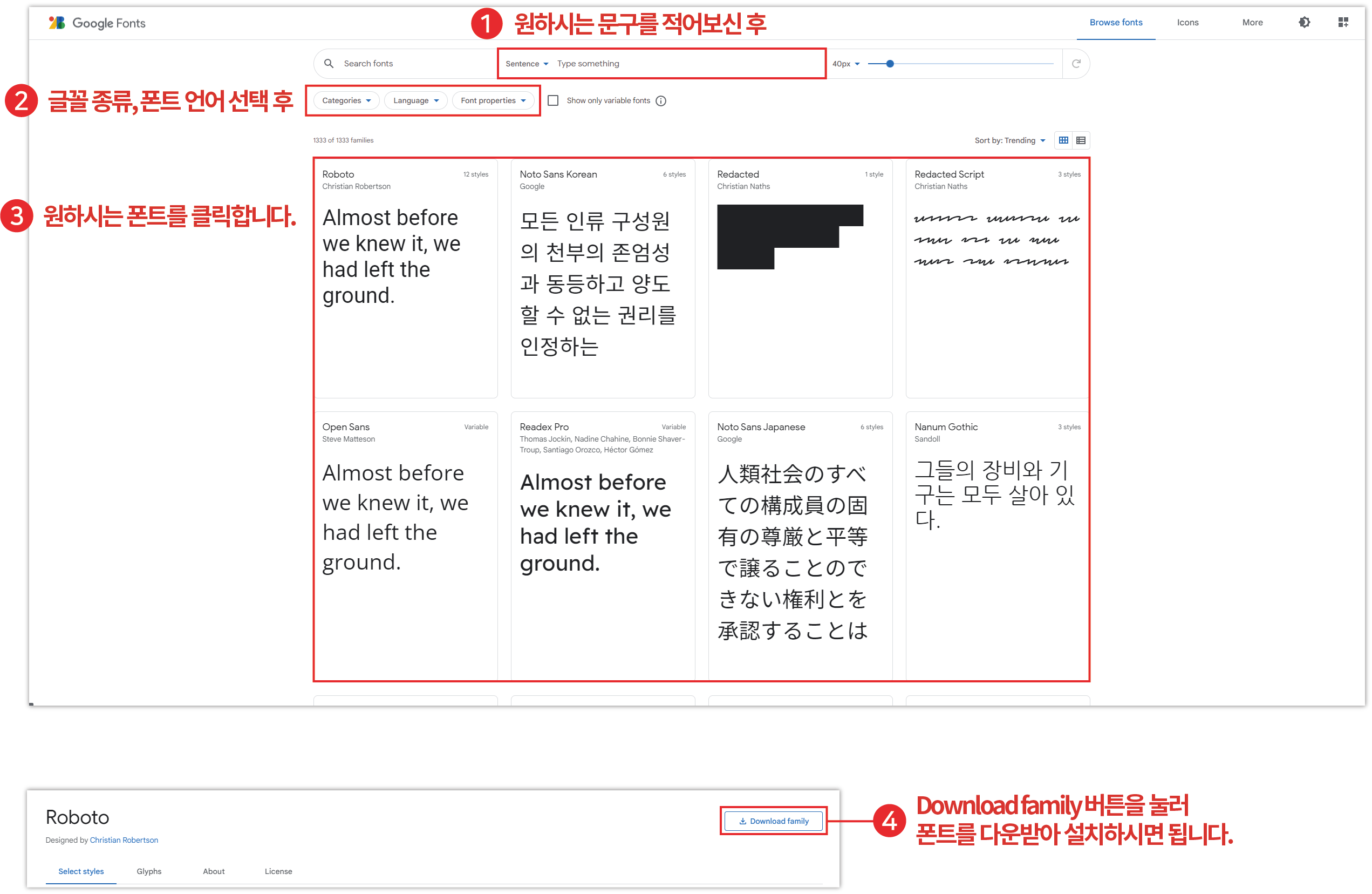 ▼ 구글 폰트 사이트 간단 이용 방법입니다.