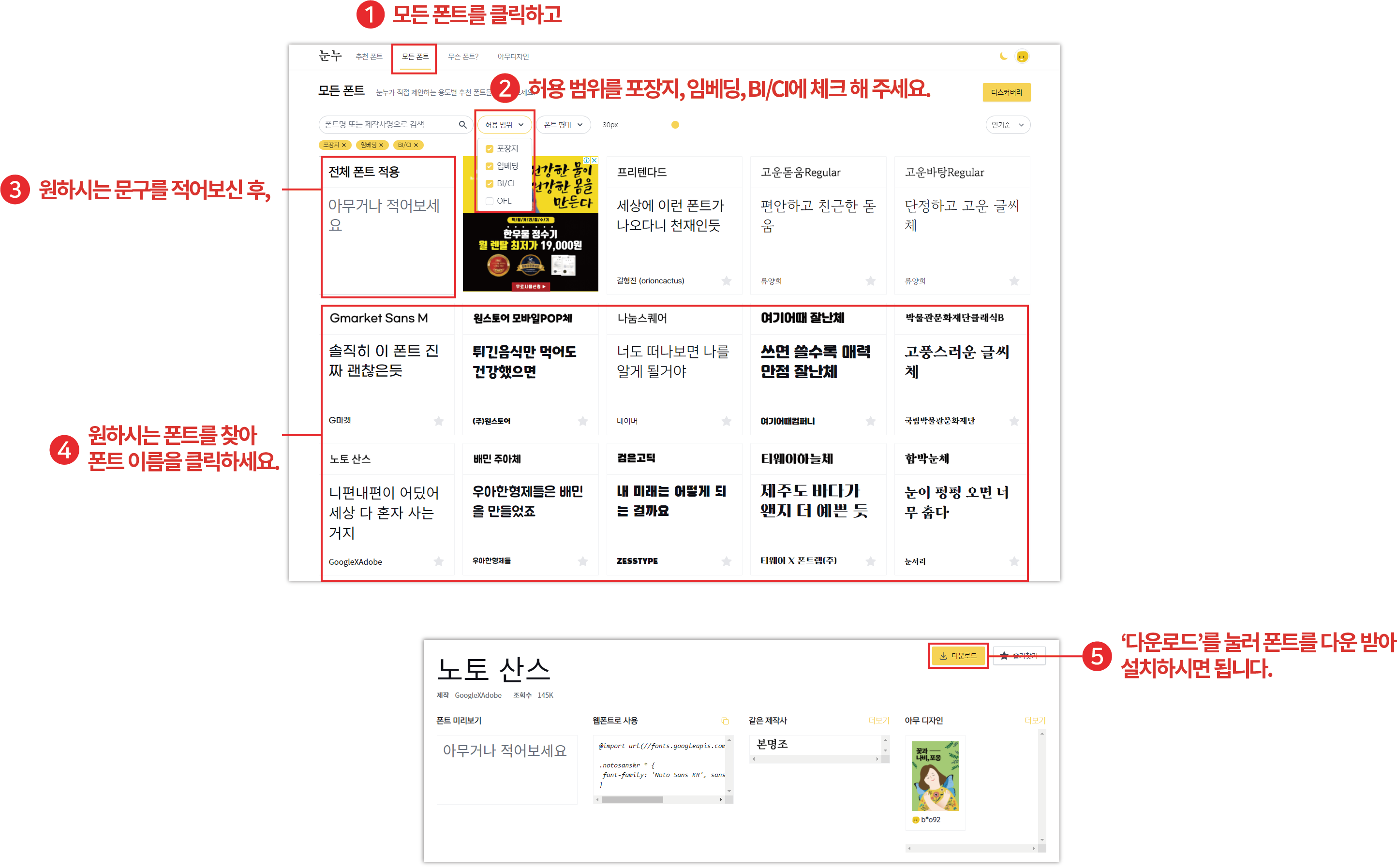 ▼ 눈누 사이트 간단 이용 방법입니다.