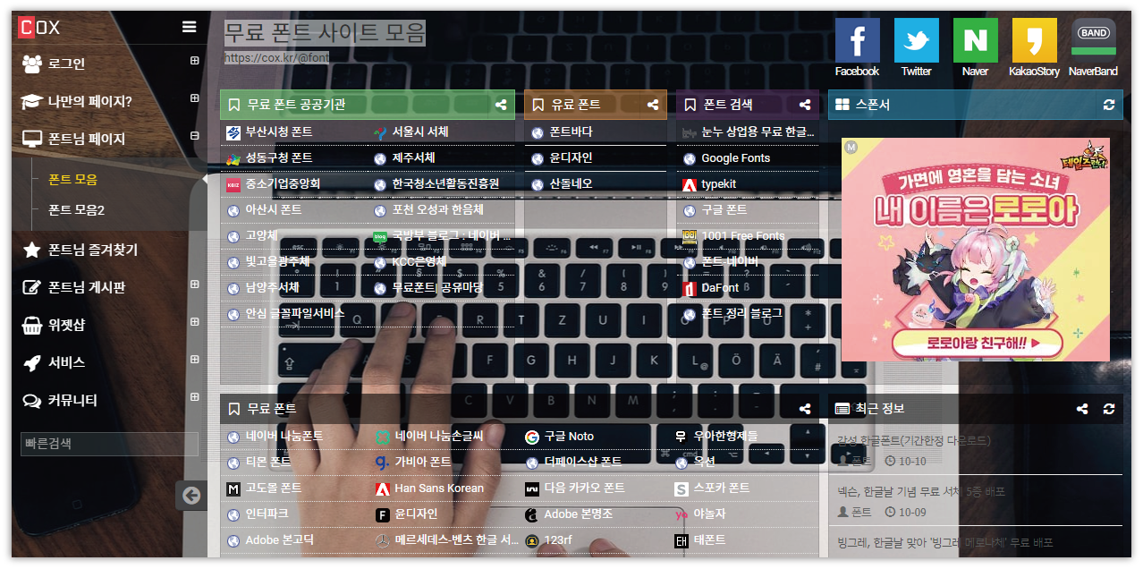 5. 무료 폰트 사이트 모음 : https://cox.kr/@font