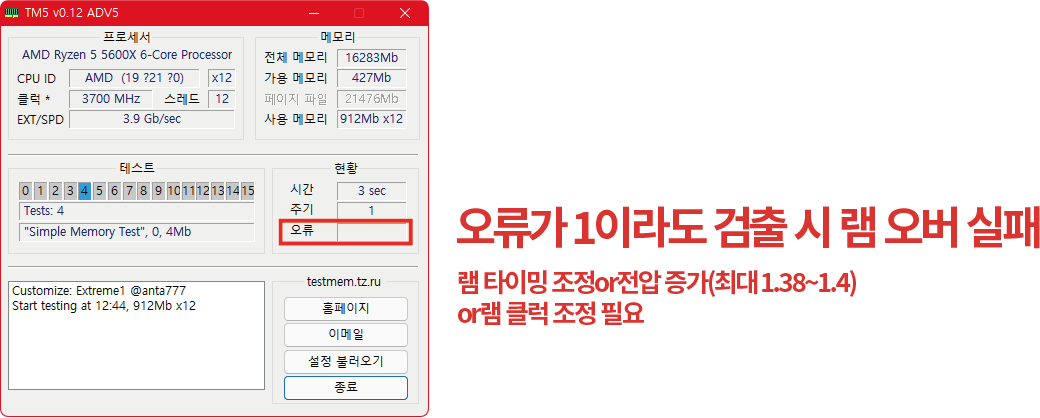TestMem5같은 경우 다른 메모리 안정화 도구와 다르게